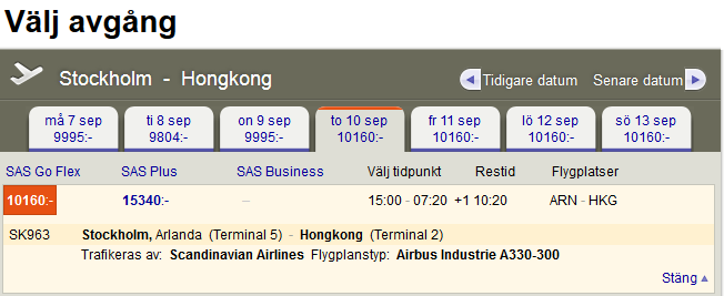 Jag brukar tycka de e skönt och boka hela resan på en biljett. och om jag skulle vilja vara i Hong Kong före jag drar till Thailand så är de skönt och flyga direkt dit först sedan hem via Kina.