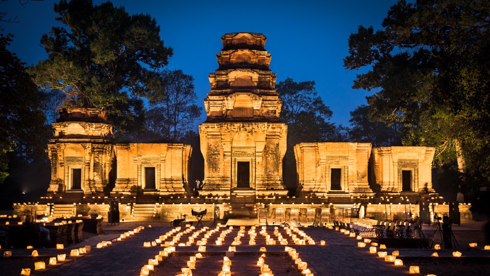 For an historic occasion, book the Angkor Temple Dinner, an immersive cultural event amidst the evocative 10th century temple Prasat Kravan, lit by over 1,000 candles. There is music, shadow puppet and circus performers from Phare, the Cambodian Circus.