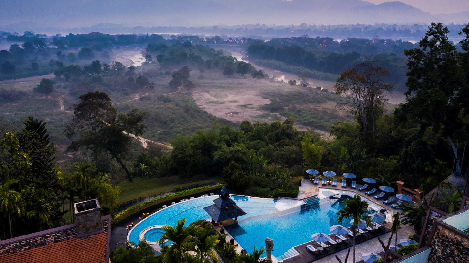 Located amidst 65 hectares of verdant bamboo forests and beautifully landscaped gardens, Anantara Golden Triangle Elephant Camp & Resort is majestically set on a ridge overlooking a valley with views out over the Mekong and Ruak rivers. With a backdrop of misty mountains at the junction where Thailand meets with Laos and Myanmar and the Golden Triangle begins, the property is located around 60 kilometres from Chiang Rai / Mae Fah Luang International Airport (CEI), a transfer time of around an hour. The property offers a parking and valet service for motorists and helicopter transfers are available for guests travelling from Chiang Mai.