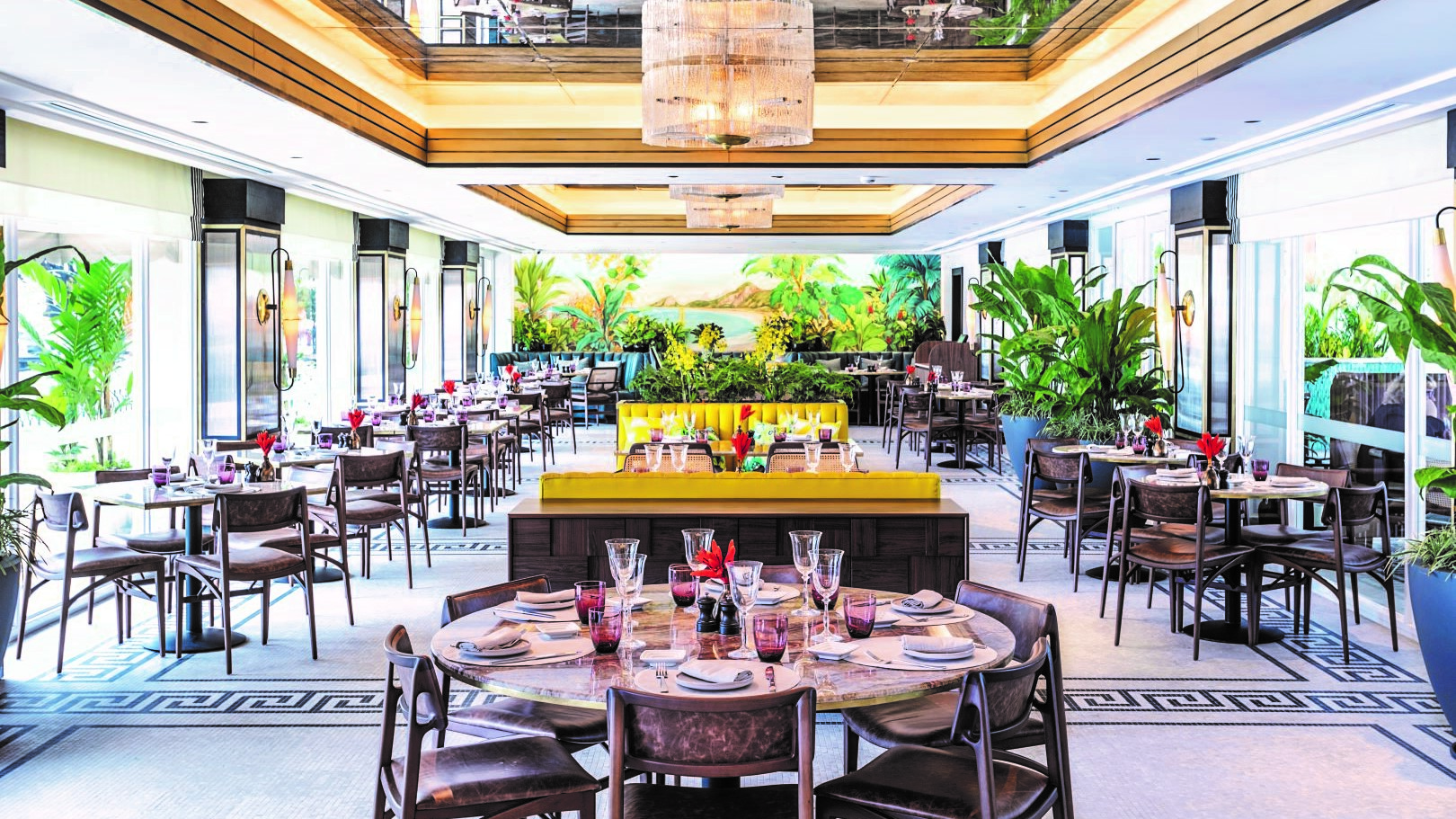 When hunger bites, there are three restaurants at this iconic hotel that might tame the beast. The bright and colourful Pérgula Restaurant shouts Rio style with its vintage-styled green leather banquettes, floor to ceiling windows and doors looking out over the pool and a vibrant tropical mural. Open for all day dining, with inside and outside seating available for some Mediterranean-Brazilian fusion, the sizzling Grill do Pérgula serves prime cuts of Brazilian meat alongside a selection of sauces and garnishes.