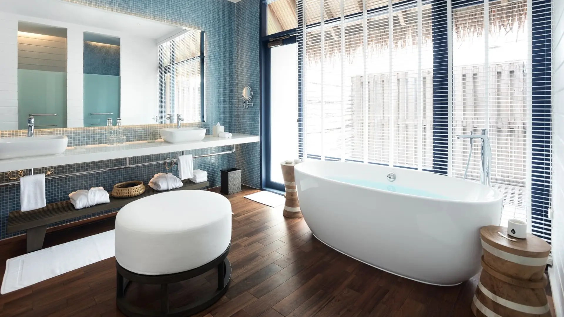 The 33 overwater villas’ architecture is simple and uncluttered mixing contemporary and traditional Maldivian styles with more than a little touch of Hamptons style in the minimalist yet stylish interiors. They range from the ingenious Dhoni (indigenous local boats) styled water and loft water villas to the more usual water villas with pool, sunrise and sunset villas – positioned to follow the sun. The structures combine New Zealand pine with Kajan thatched roofs with natural materials used throughout with high raftered ceilings and teak flooring.