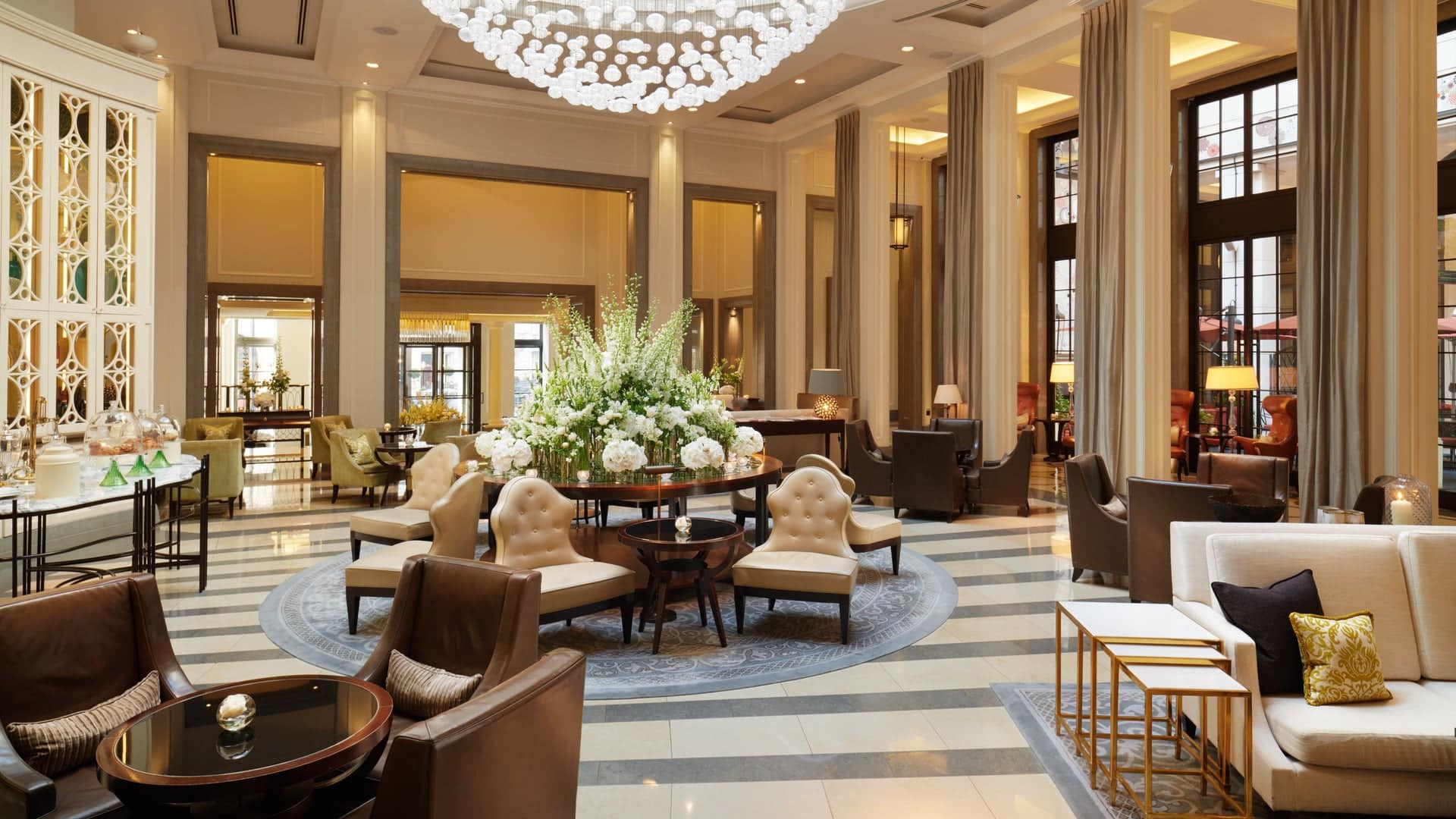 Note the look & feel of Corinthia London. Swathes of fine marble, sturdy wood furniture, shiny metals, plush carpets and elegant drapes.