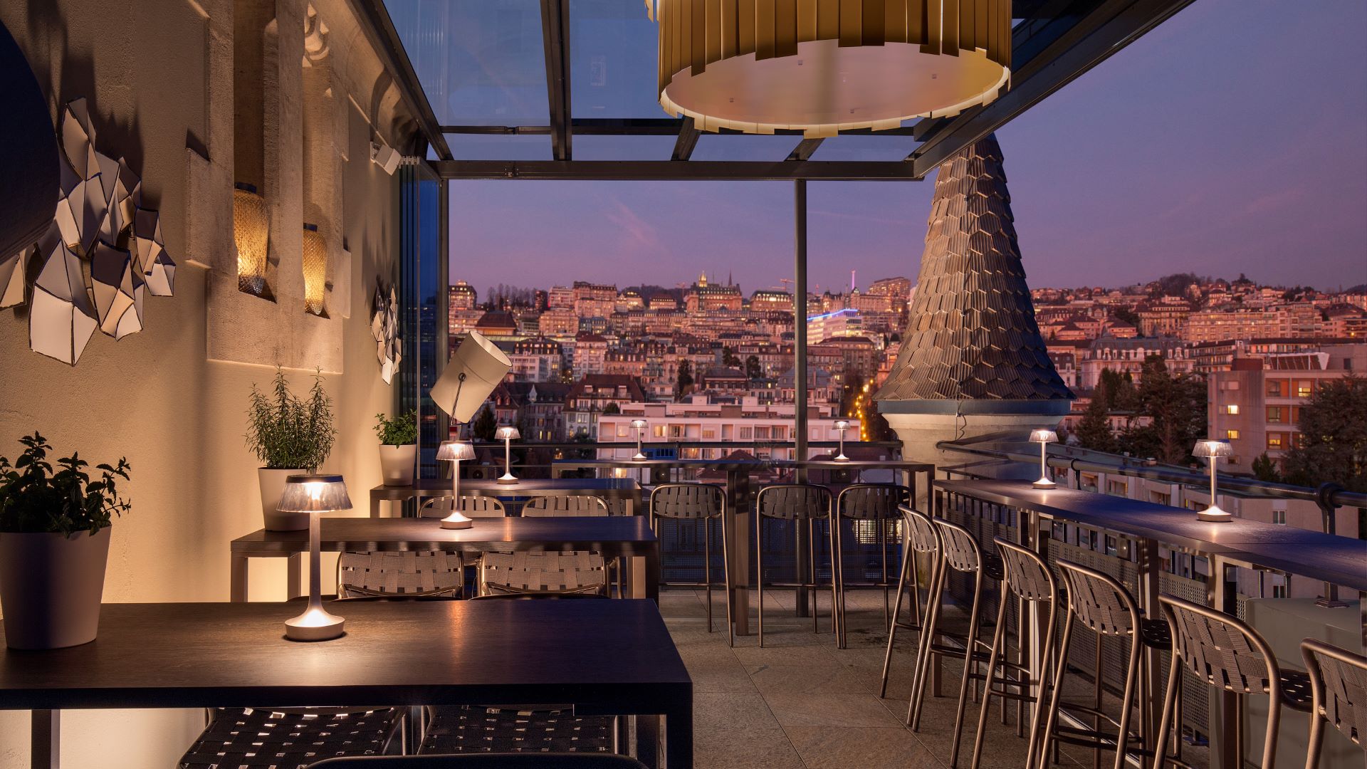 - Cocktails: The SkyLounge is rapidly becoming the “place to be seen” in Lausanne. It offers sensational tapas-style meals washed down with superb cocktails. So, feast on burrata or pizza, while sipping on a Satsuma Sour (Bruichladdich Single Malt, Aperol, lime juice, egg white and bitters) while taking in the panorama of Lausanne. The tiramisu is a must!