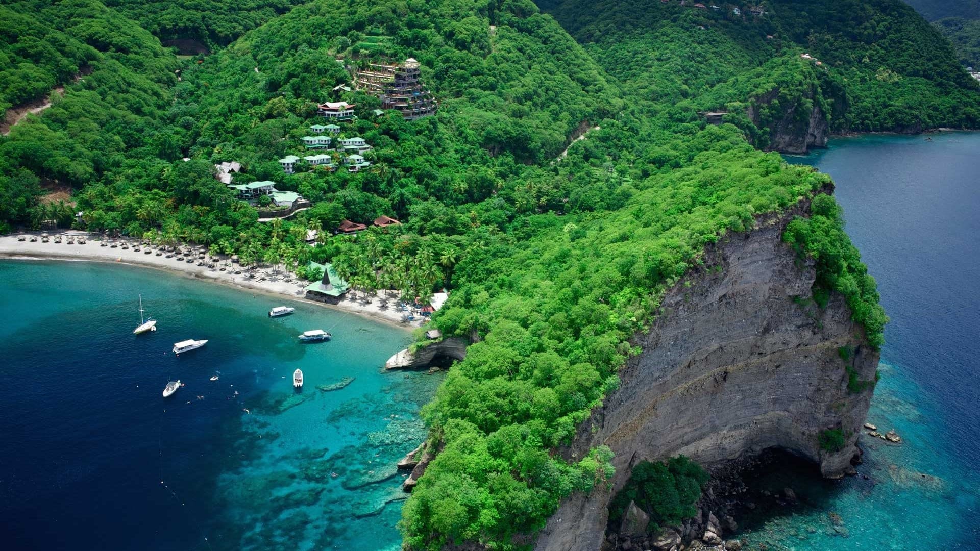 The resort is 2.4 kilometres north of Soufrière (a rather bumpy 10-minute drive) and approximately 27 kilometres or a 55-minute transfer from UVF Hewanorra International Airport and 43.4 kilometres or a 75-minute drive from SLU George Charles Airport.