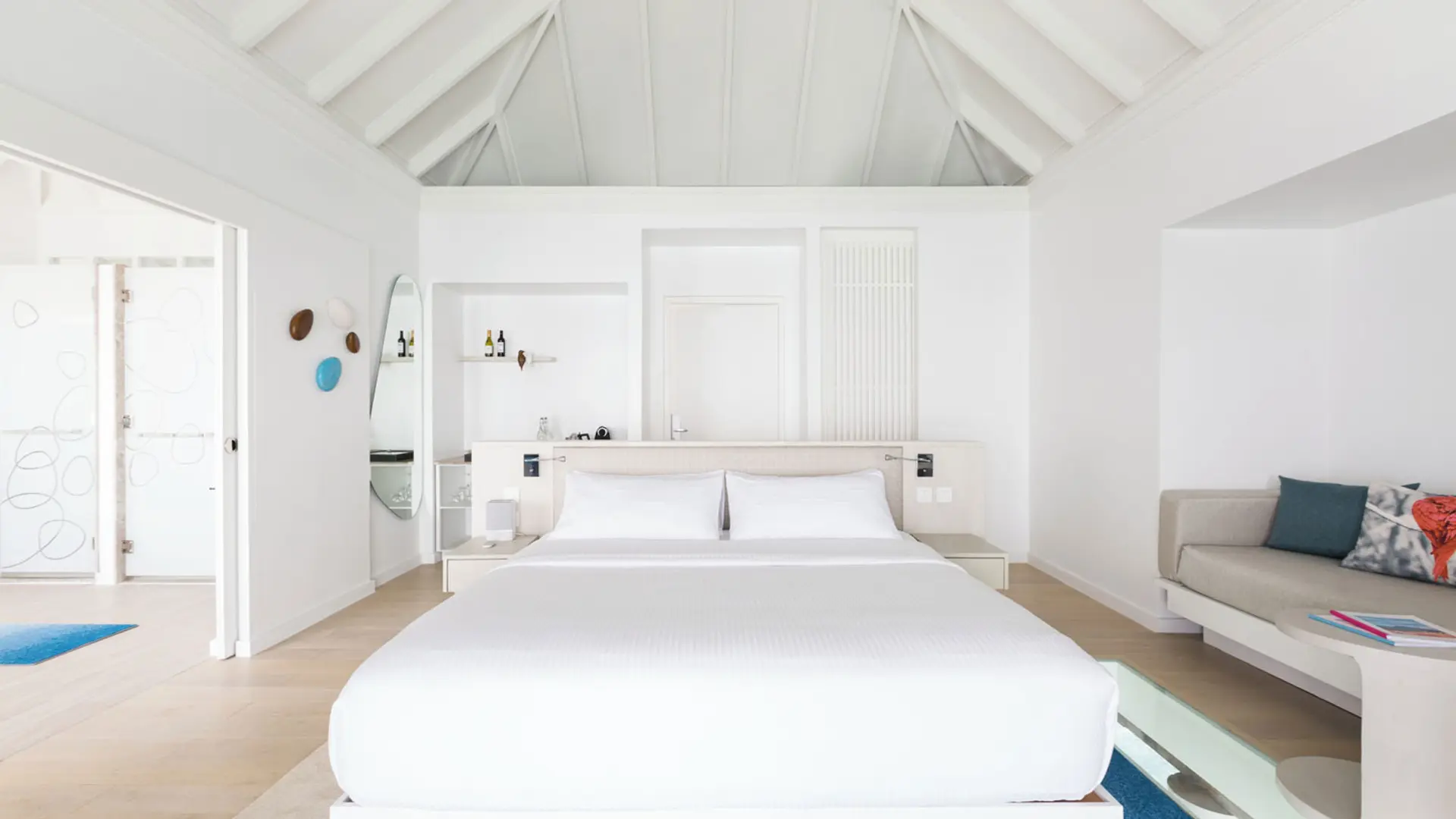 The Beach Villas are the most popular at 95 square metres of space with each villa offering a wonderful sea view from floor to ceiling windows, a tropical indoor-outdoor bathroom and direct access to the beach and lagoon. If you want your own private pool however opt for the Beach Pool Villas at 116 square metres of space, with a premium location to enjoy those Maldivian sunset moments.