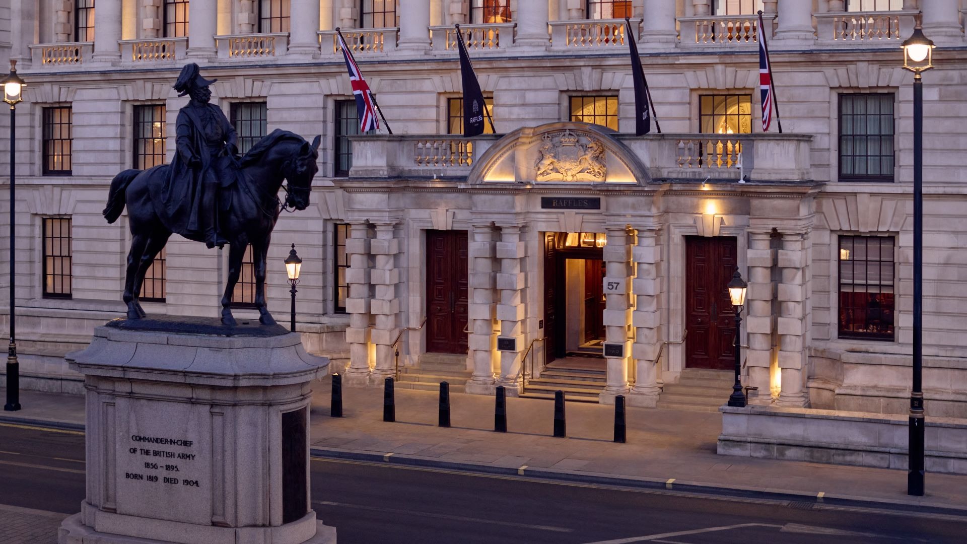 Raffles London at The OWO is boxed in by Whitehall, Whitehall Court, Whitehall Place and Horse Guards Avenue. The main entrance to the hotel faces the Royal House Guards - home to the annual Trooping the Colour.