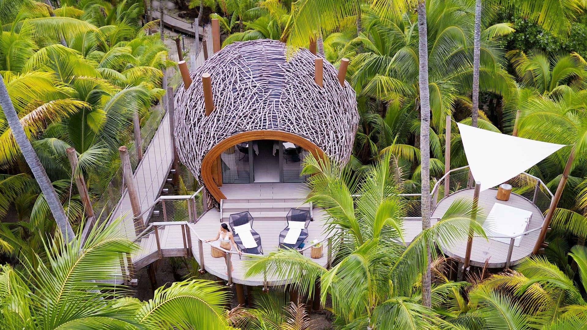 Varua Te Ora Polynesian Spa is a wellness sanctuary, hidden within a lush oasis of exotic plants. Deeply rooted in Polynesian culture, the 2,000 square metres spa offers the best holistic treatments inspired by Polynesian traditions. The spa features, in the middle of an area of century-old pandanus trees, the Fare Manu (bird’s nest) treatment cabin, perched six metres above the ground, offering an extensive view over a freshwater lake covered with lotus flowers. Other facilities include areas for relaxation, energy (Fare Manu), a hammam, a freshwater cascade and an herbal tea room at the water’s edge.