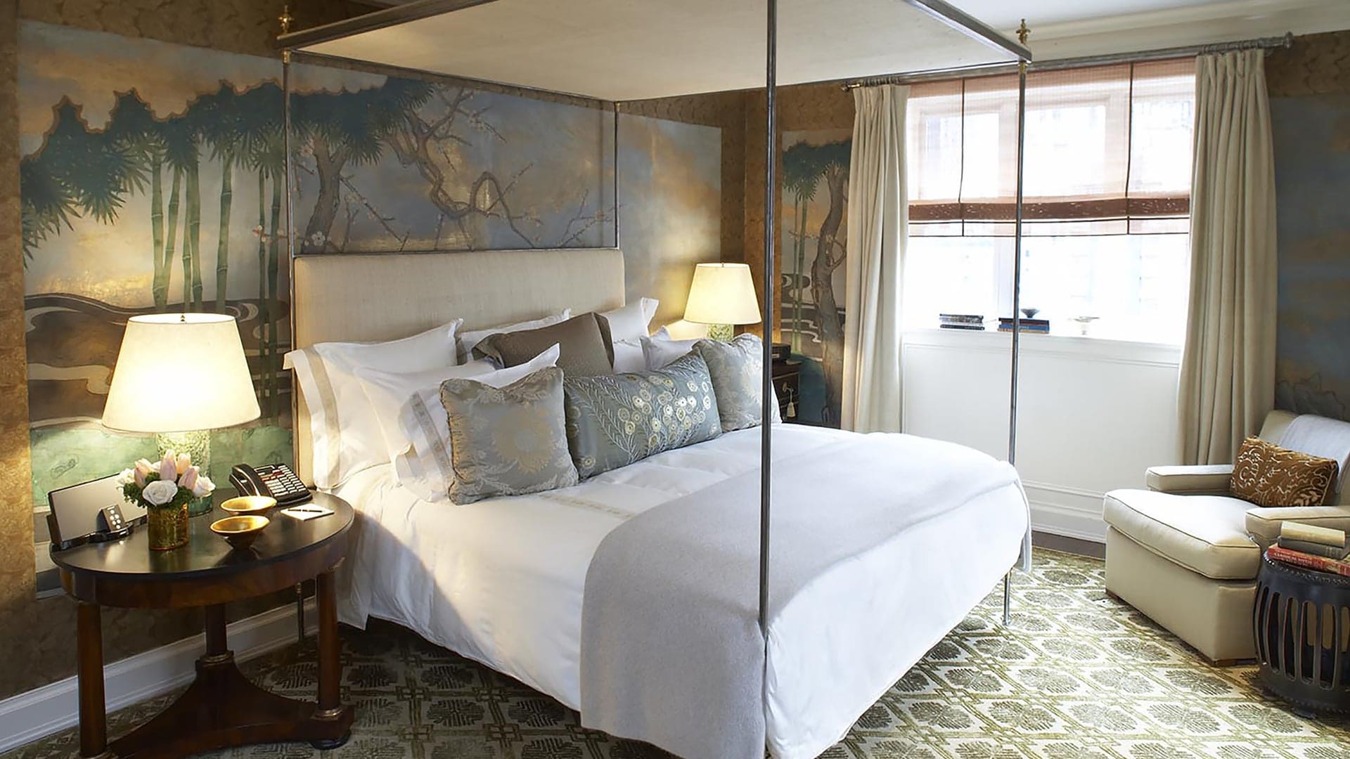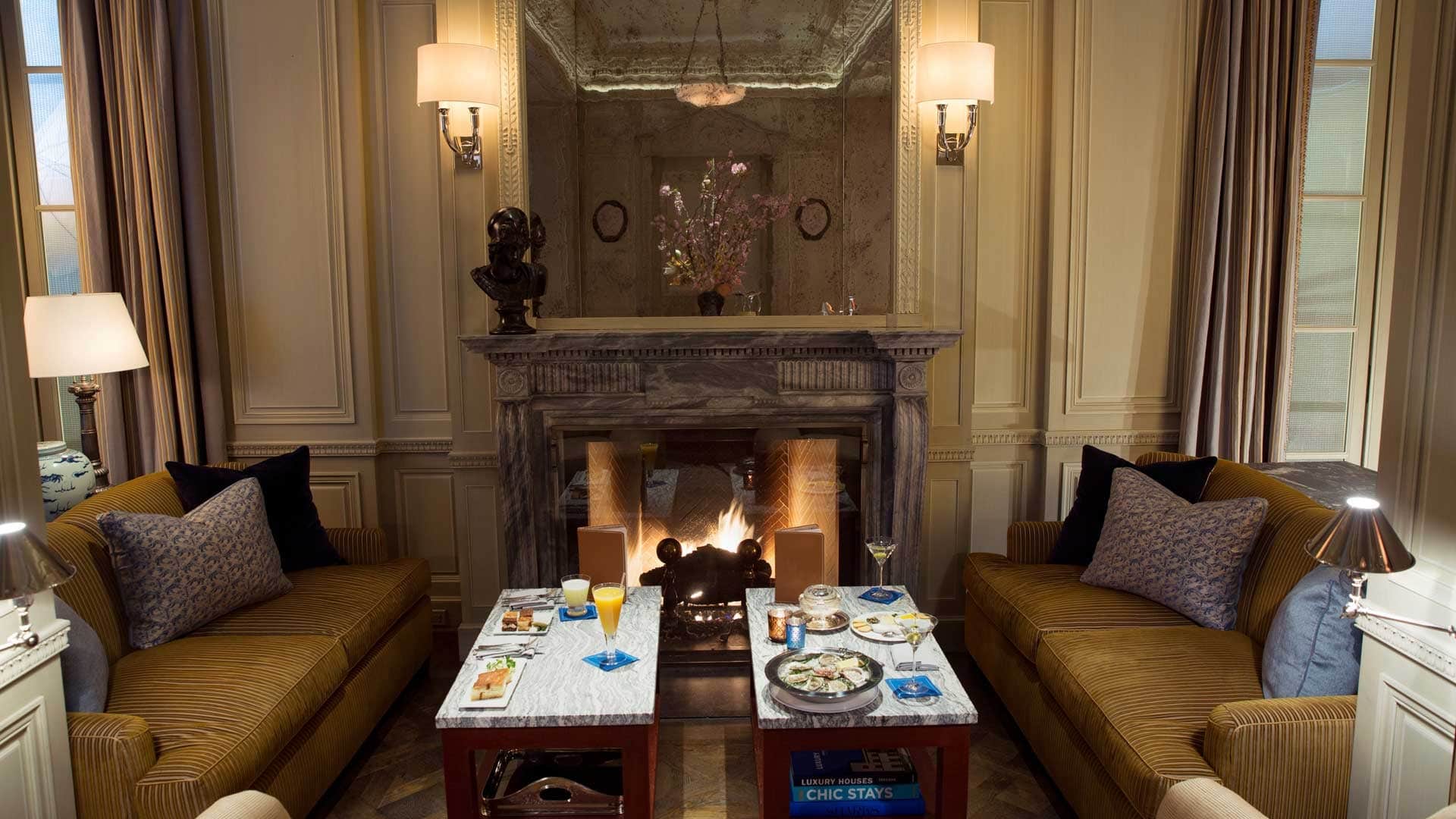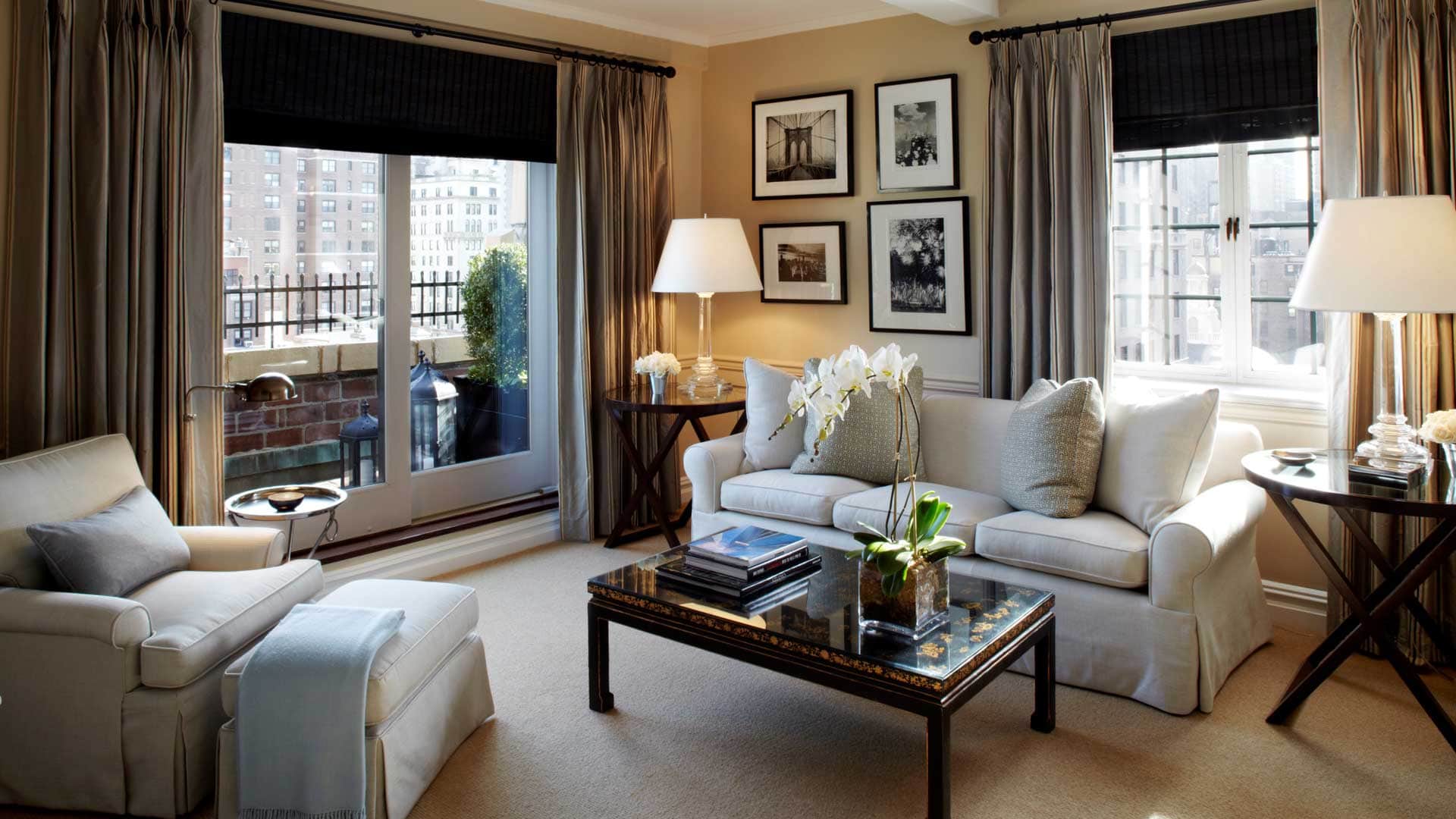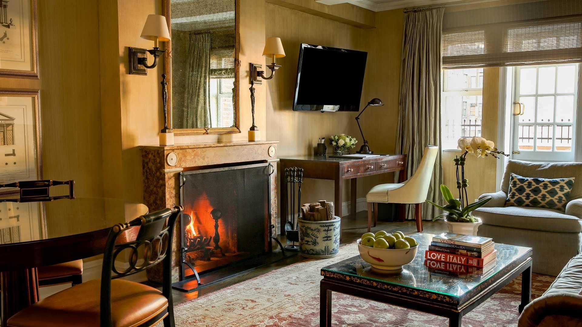 Suites offer space, sun-filled rooms and a timeless residential feel. Many enjoy landscaped terraces and wood burning fireplaces with scented firewood menus and views overlooking the Manhattan skyline. Custom décor ranges from oriental rugs and antique silk-painted art pieces to mirrored Jewel Box minibars filled with gastronomic goodies and curated Assouline book collections to full kitchenettes designed by Poggenpohl and bedrooms dressed with exquisite de Gournay wallpapers.