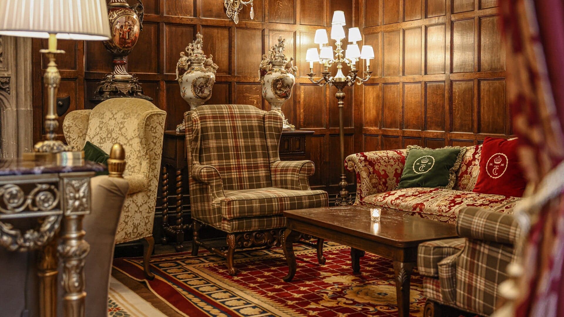 - Architectural Splendour and Luxurious Accommodations: The castle's stunning architecture, complete with original features like grand fireplaces, ornate ceilings, and towering battlements, creates an enchanting atmosphere. The rooms and suites are meticulously restored to combine historic charm with modern luxury, offering guests an opulent and comfortable stay. Each of our bedchambers has its own unique character, often with four-poster beds and stunning views of the beautiful gardens.